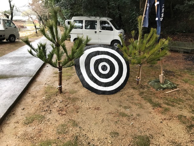 児守神社では毎年、的射の神事を行っています。的を鬼と見立てて、破魔矢を射り 無病息災をお祈りします。